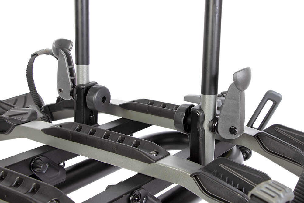 Fitting to the car: When you first place the HORNET 3 on the tow ball it supports itself – you can let go of it and it won’t fall to the ground. You’ll then take the weight again, spin the tightening knob until it’s tight, and lock it. BUZZRACK‘s carriers comply with the very exacting standard XPR-18-904-4 and therefore include an anti-sway tensioner; this has an integrated handle and 2 or 3 turns are usually sufficient. The video below shows the fitting to the car and the installation of bikes.