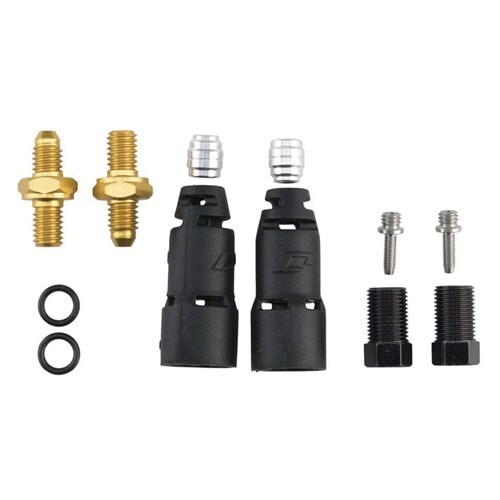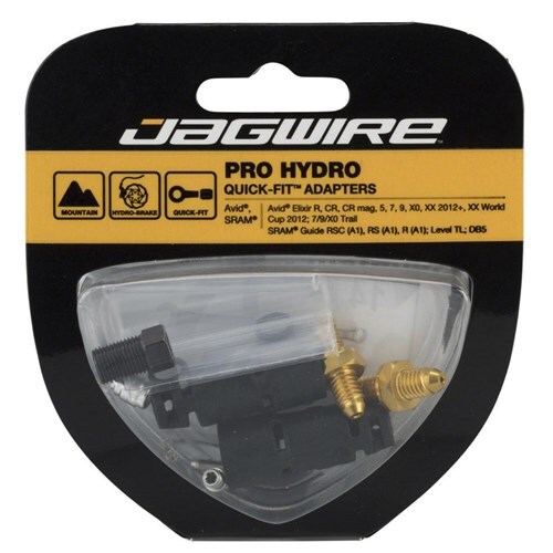 Designed to work seamlessly with our Pro Hydraulic Hose, Jagwire Quick-Fit Adapters are the perfect way to ensure braking performance and durability. Each adapter kit contains all the components required to connect Jagwire Pro Hydraulic Hoses to popular brakes from SRAM®, Avid®, Shimano®, Formula®, Hope®, Hayes®, Magura® and Tektro®. Each kit includes enough hardware for one bicycle. Because the fittings are separate from the hose, dealers can offer more color choices without adding inventory.