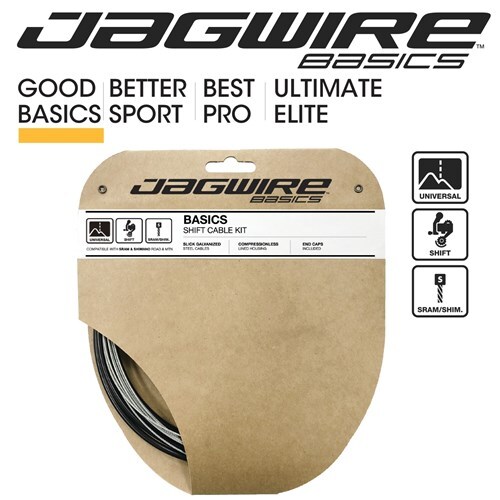 Introducing the new Jagwire Basics. With a new logo and updated packaging, we're offering a fresh look on the products you've trusted for more than 20 years. Known for its high quality, reliability and affordable price, the Jagwire Basics assortment provides extraordinary value.