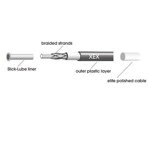 Elite Polished Ultra-Slick inner cables and Slick-Lube liners dramatically reduce friction XEX housing is nearly 30% lighter weight than traditional shift housing 5.0mm shift housing and 1.9mm inner liner may not be compatible with all frames and components.