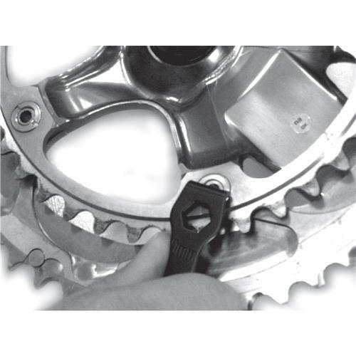 Double-ended economical chainring nut wrench is used to tighten or loosen chainring nuts and securely holds the slotted nut to prevent spinning. Fits most slotted-type nuts. The other end is to remove the dust cap from cranks. Includes box wrench 9mm and 10mm.
